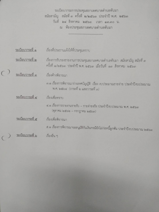 ขอเชิญประชุมสภาเทศบาลตำบลทับมา สมัยสามัญ สมัยที่ 3 ครั้งที่ 2/2563 ประจำปี พ.ศ. 2563