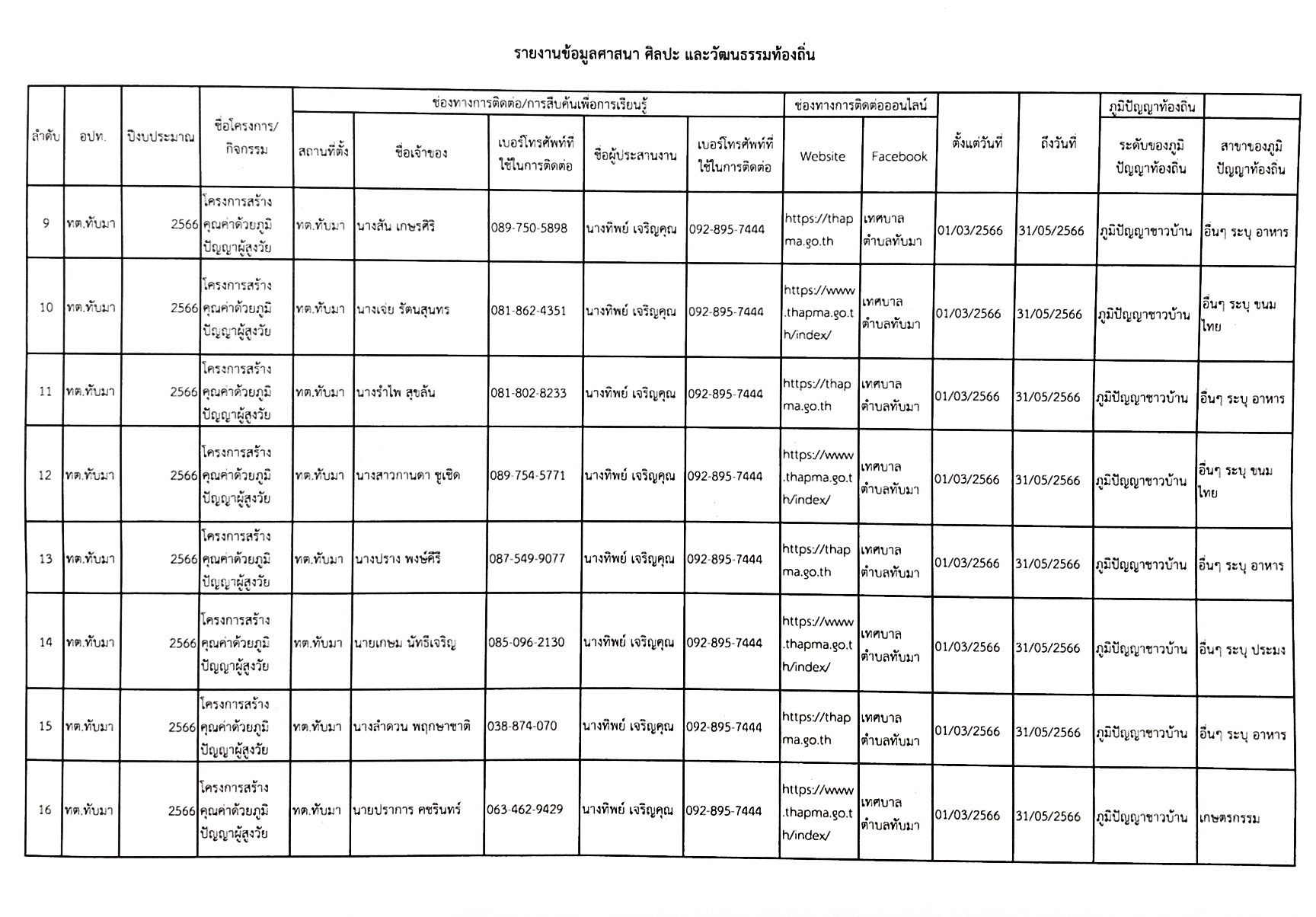 ประชาสัมพันธ์ข้อมูลภูมิปัญญาท้องถิ่น เทศบาลตำบลทับมา