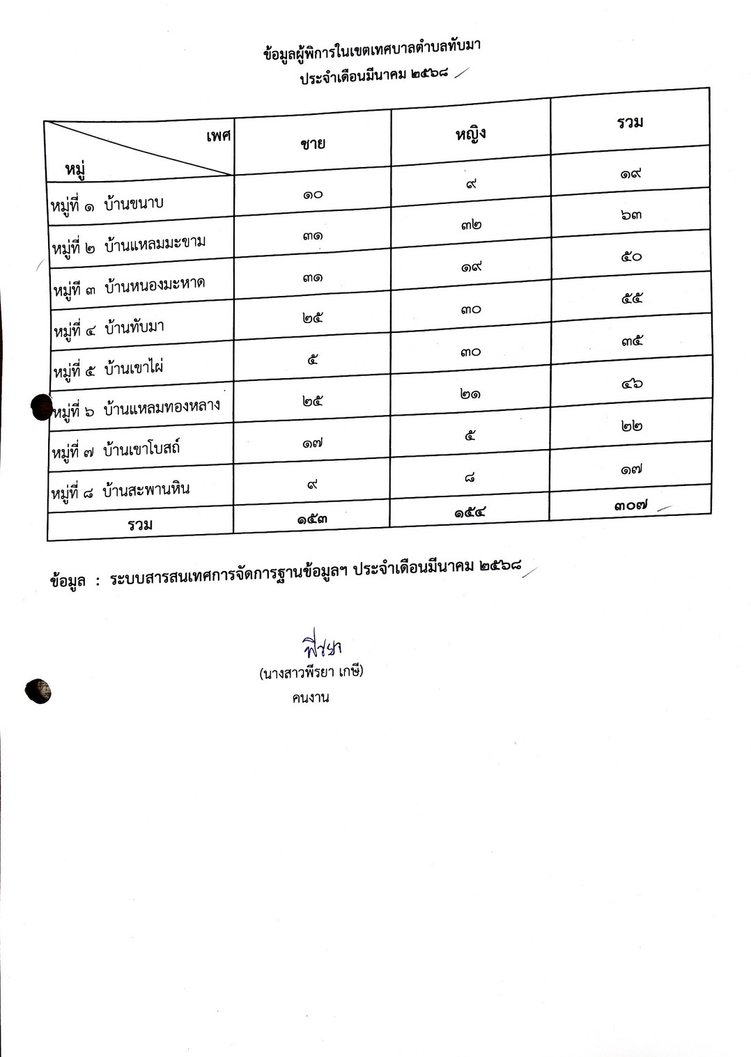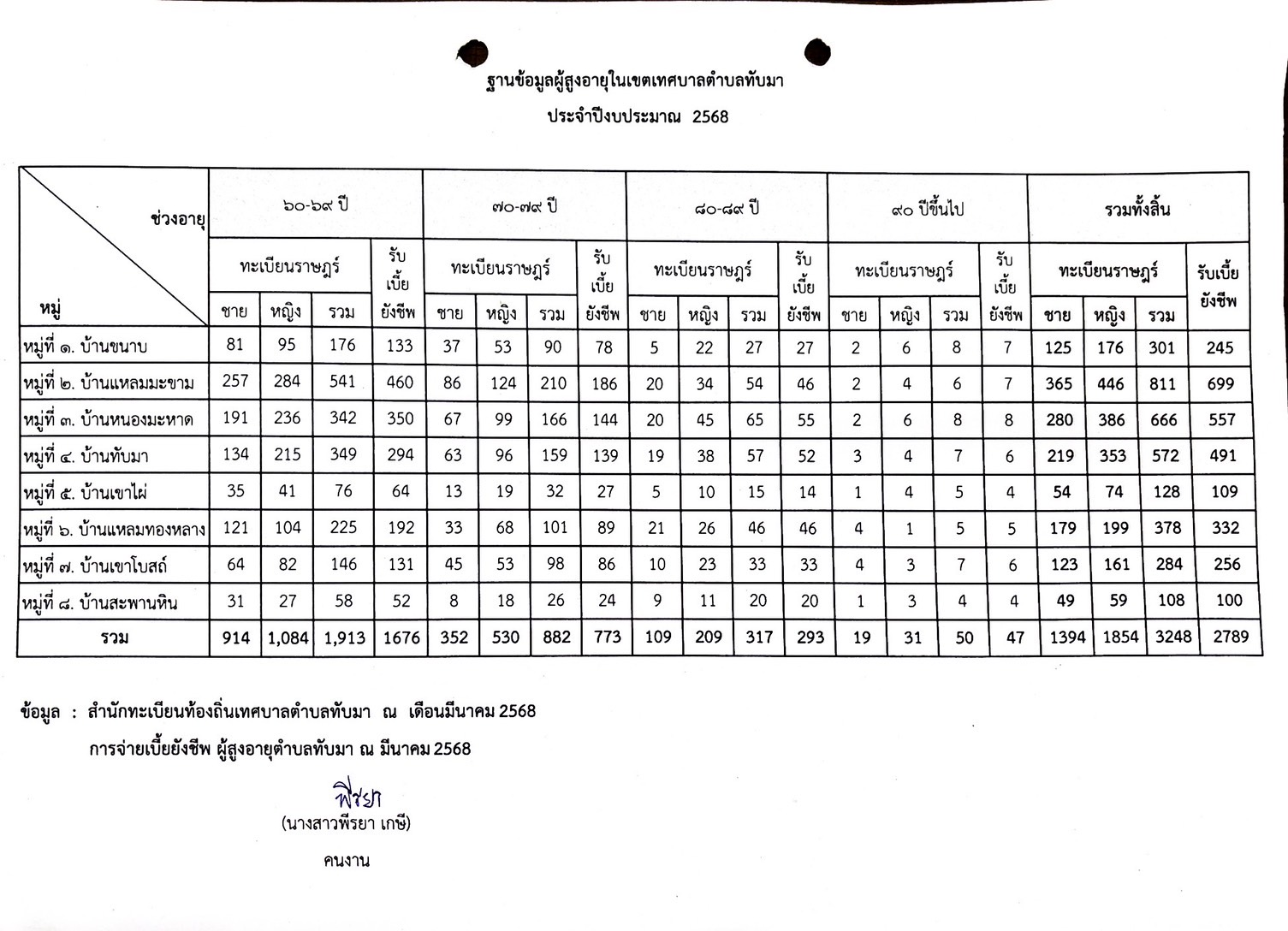 ฐานข้อมูลผู้สูงอายุและคนพิการ เดือนเมษายน 2567