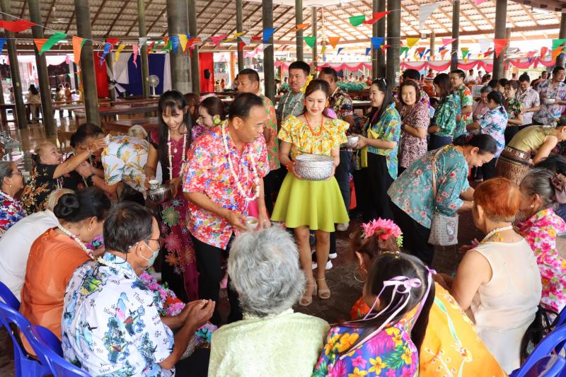 เทศบาลตำบลทับมา ร่วมกับวัดทับมา จัดกิจกรรมรดน้ำขอพรผู้สูงอายุ สืบสานประเพณีสงกรานต์ ภายใต้โครงการลานวัฒนธรรมวิถีถิ่นตำบลทับมา ประจำปีงบประมาณ 2569