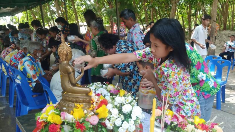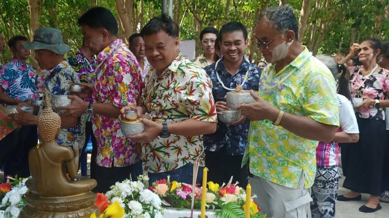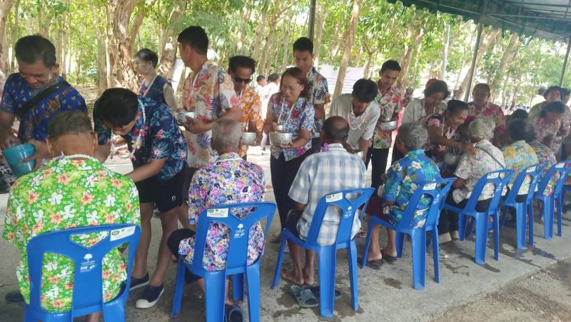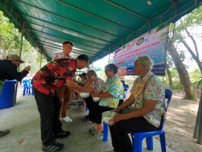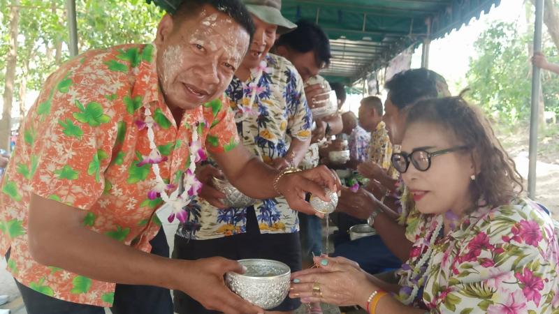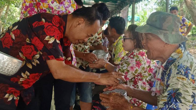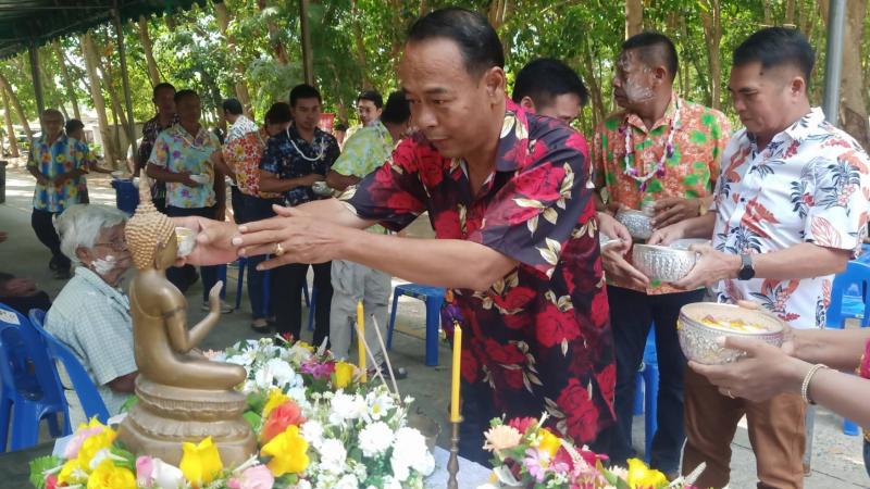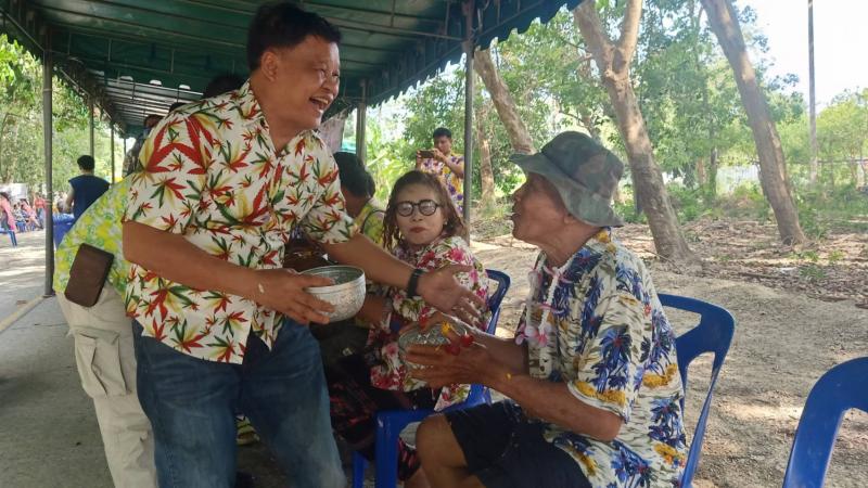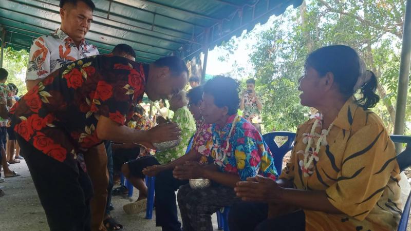 เทศบาลตำบลทับมา ร่วมสืบสานประเพณีสงกรานต์ จัดกิจกรรมรดน้ำขอพรผู้สูงอายุ เสริมสร้างความกตัญญูและความสามัคคีในชุมชน หมู่ที่ 6 บ้านหนองโพรง แหลมทองหลาง