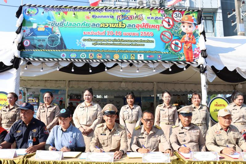 เทศบาลตำบลทับมา เปิดจุดบริการประชาชนเพื่อป้องกันและลดอุบัติเหตุทางถนน ช่วงเทศกาลสงกรานต์ พ.ศ. 2569