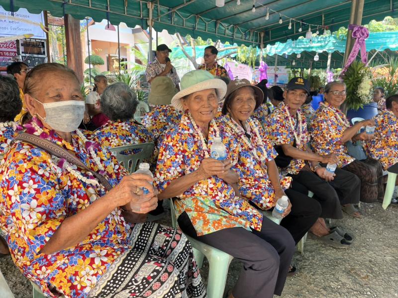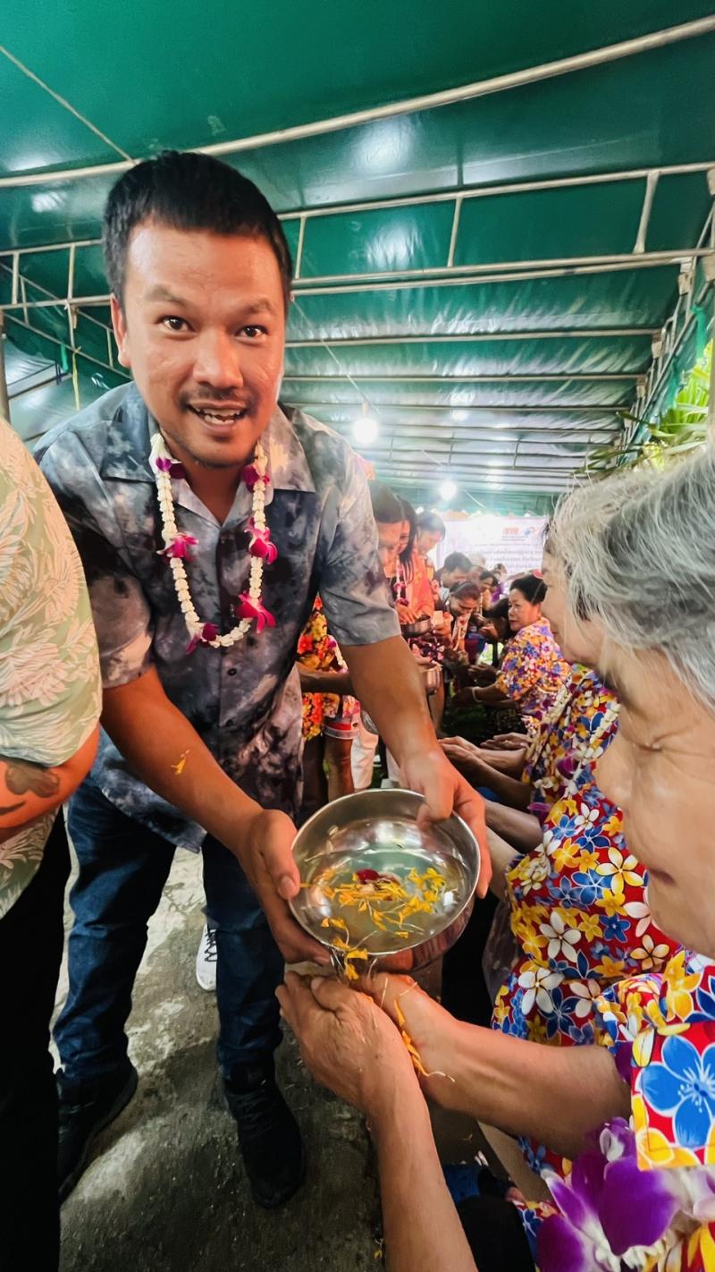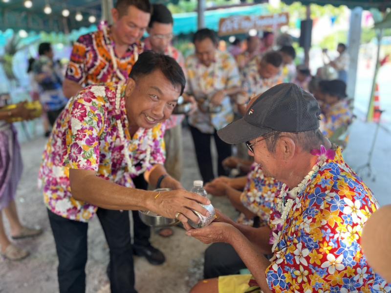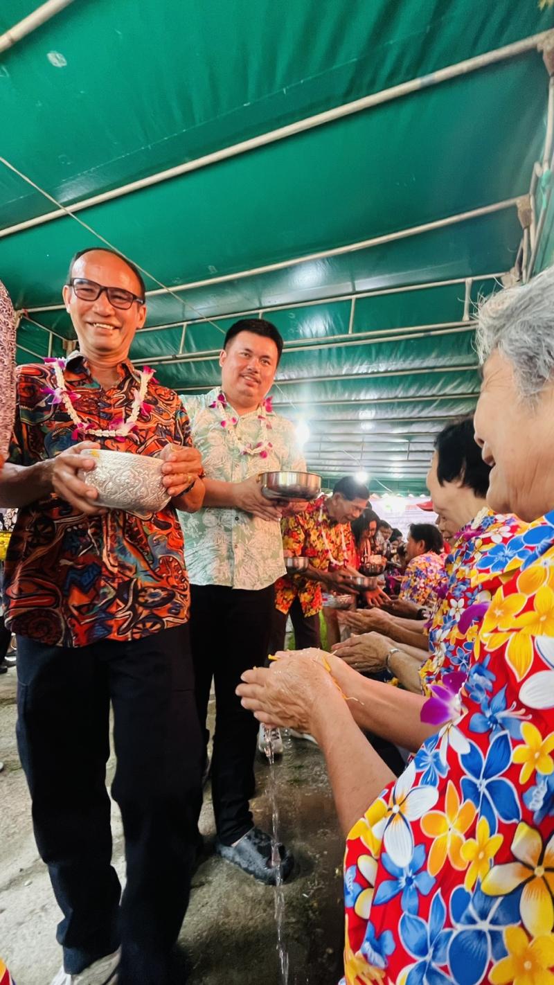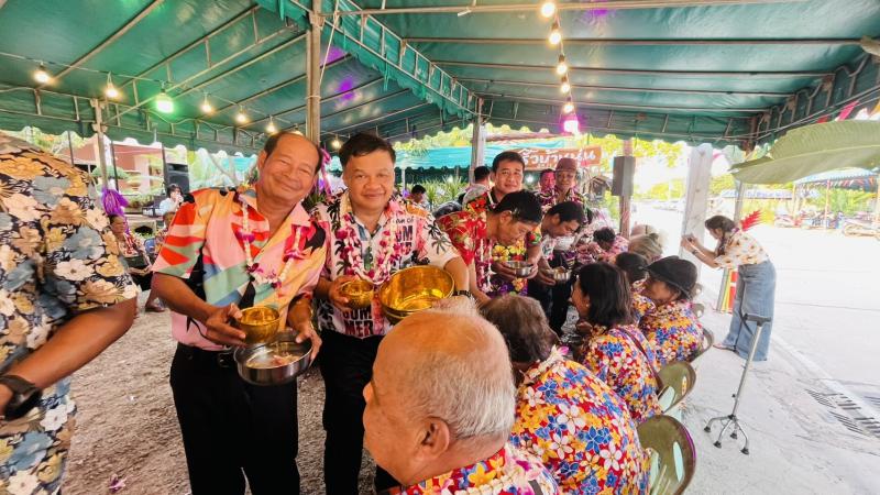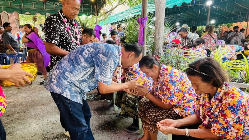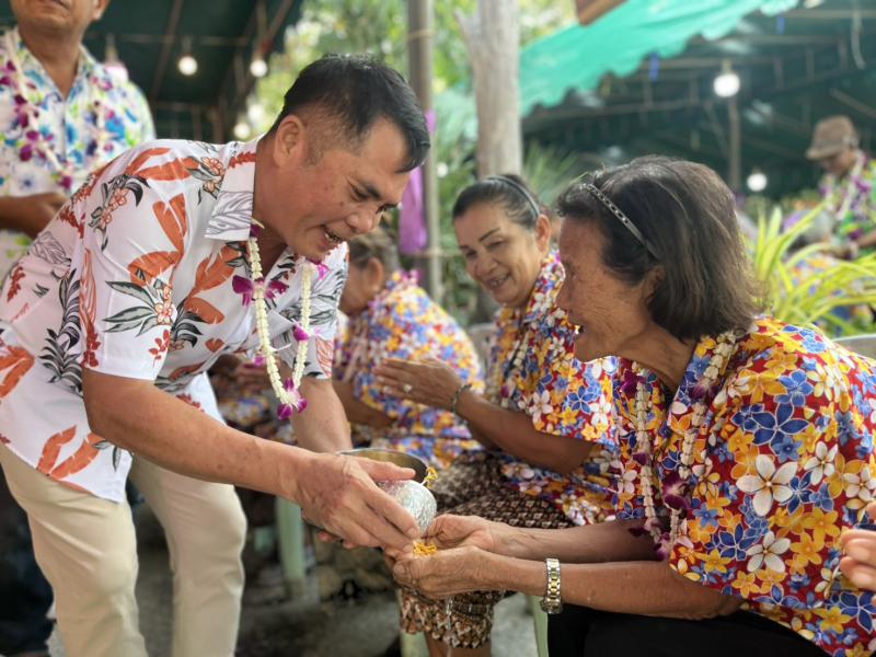 เทศบาลตำบลทับมา ร่วมสืบสานประเพณีสงกรานต์ จัดกิจกรรมรดน้ำขอพรผู้สูงอายุ เสริมสร้างความกตัญญูและความสามัคคีในชุมชน หมู่ที่ 4 บ้านทับมา