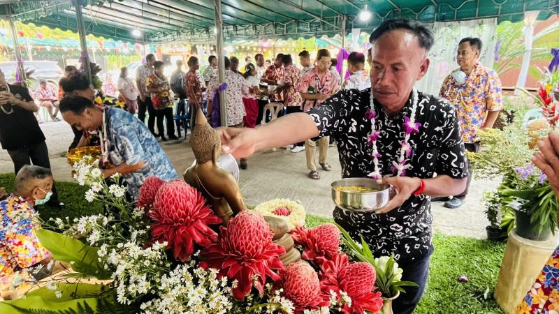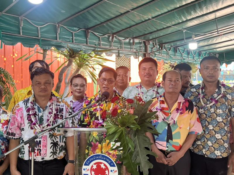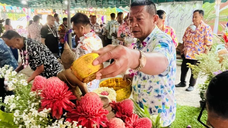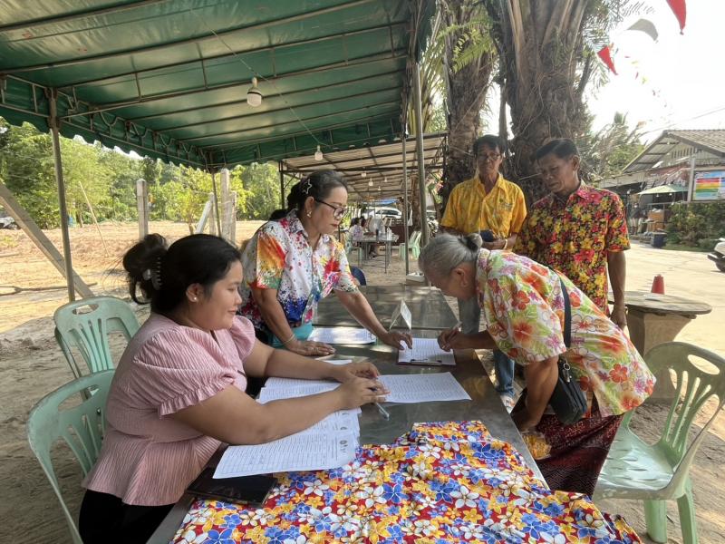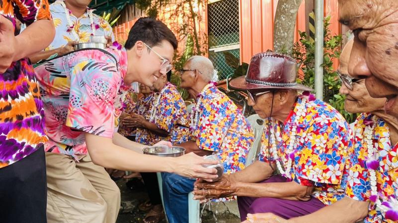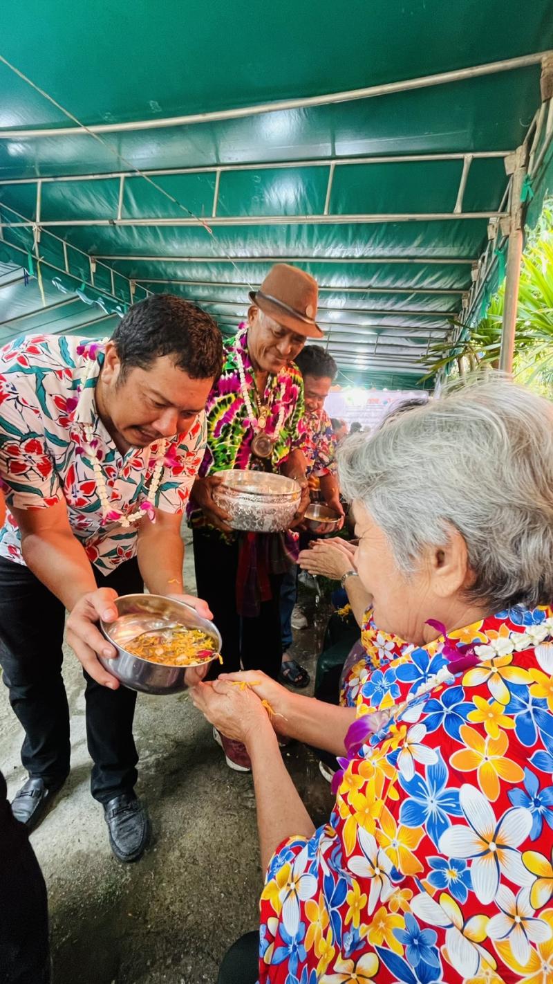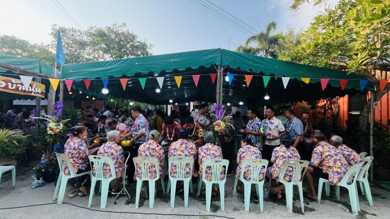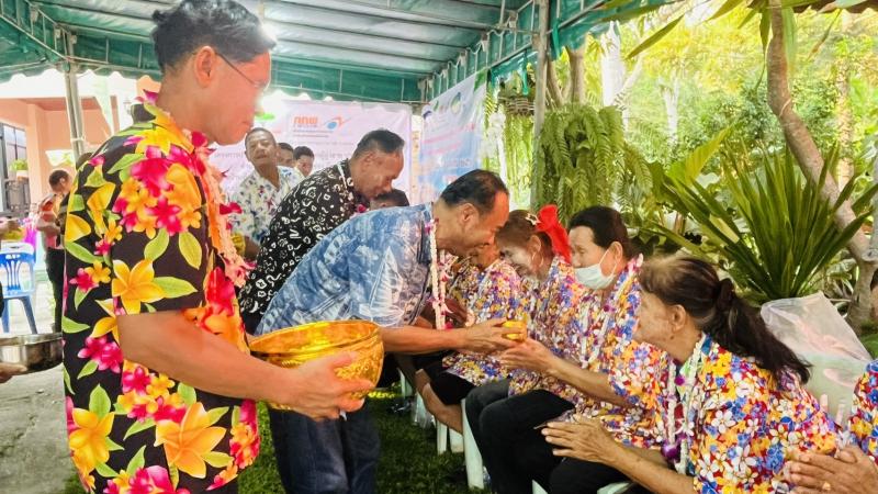 เทศบาลตำบลทับมา ร่วมสืบสานประเพณีสงกรานต์ จัดกิจกรรมรดน้ำขอพรผู้สูงอายุ เสริมสร้างความกตัญญูและความสามัคคีในชุมชน หมู่ที่ 4 บ้านทับมา