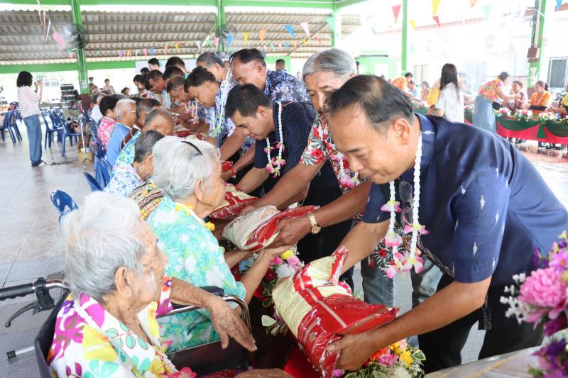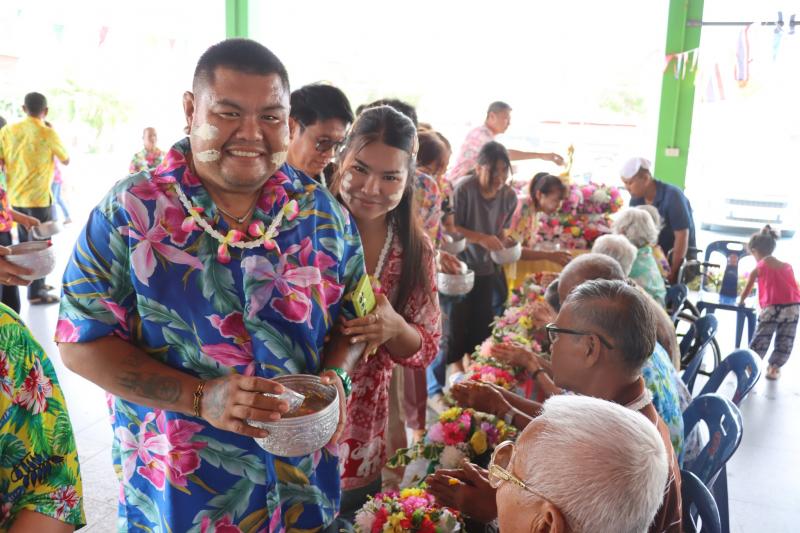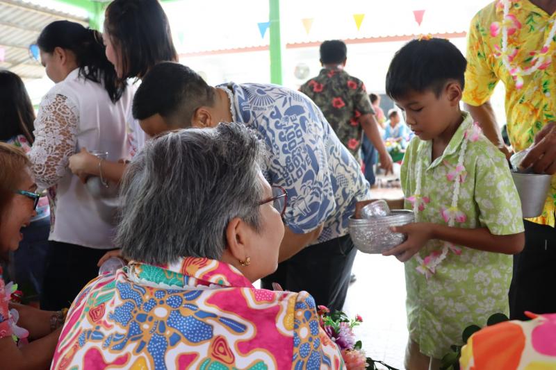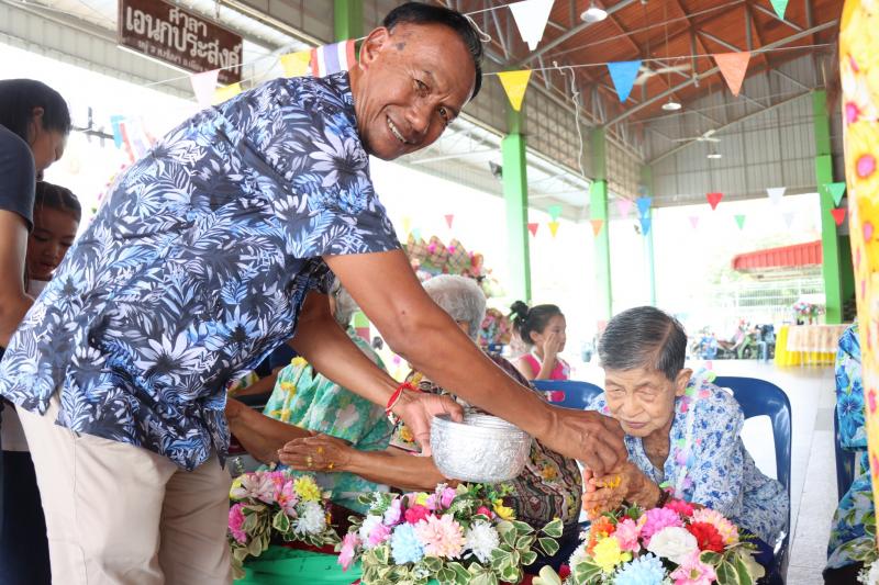 เทศบาลตำบลทับมา ร่วมสืบสานประเพณีสงกรานต์ จัดกิจกรรมรดน้ำขอพรผู้สูงอายุ เสริมสร้างความกตัญญูและความสามัคคีในชุมชน หมู่ที่ 3 บ้านหนองมะหาด