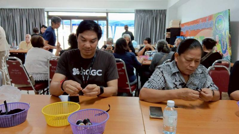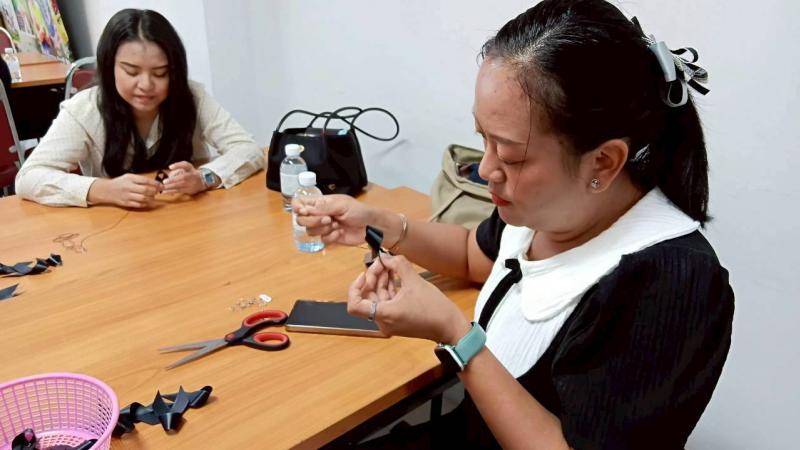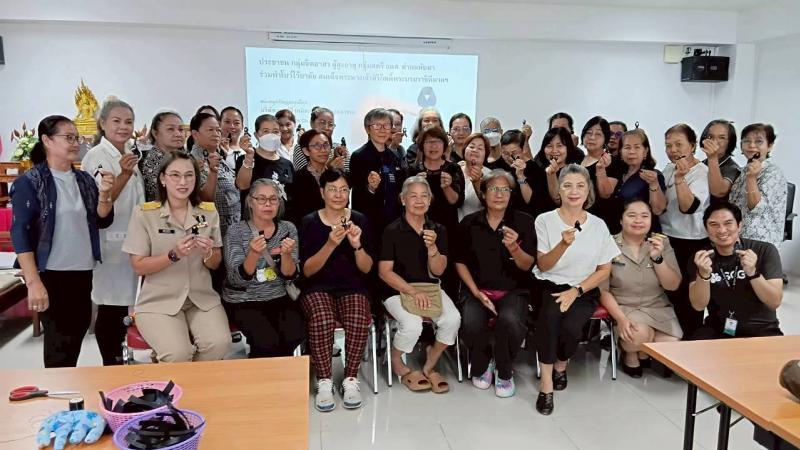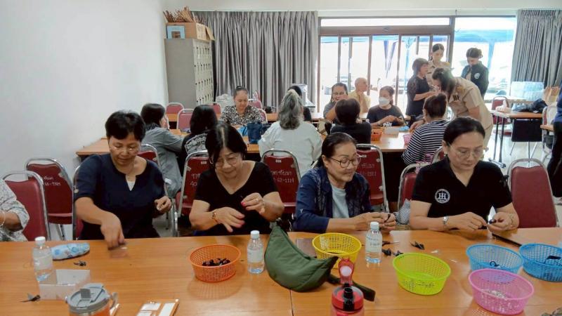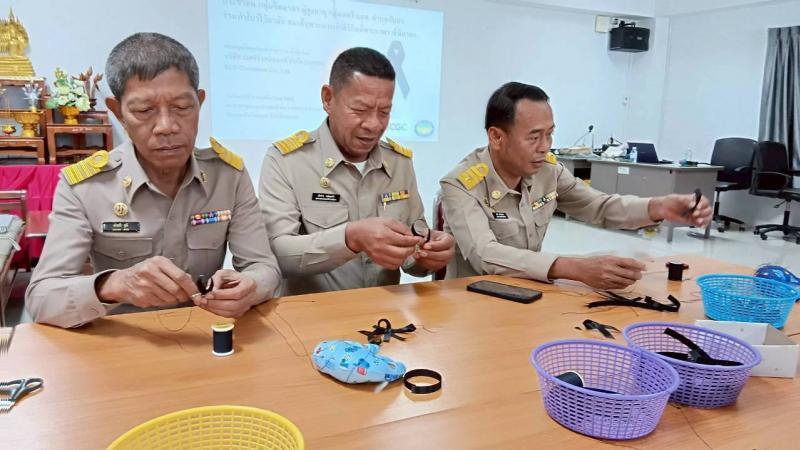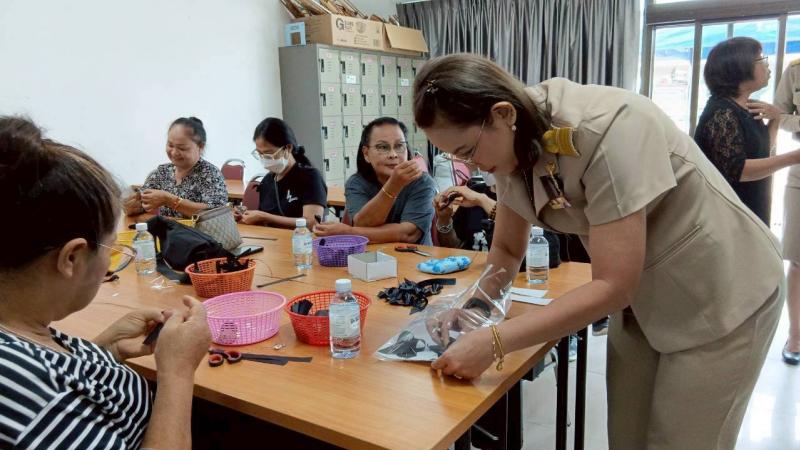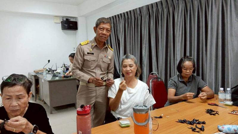 เทศบาลตำบลทับมา ร่วมกับบริษัท เอสซีจี เคมิคอลส์ จำกัด (มหาชน) ผู้สูงอายุ กลุ่มสตรี อผส. ประชาชนและจิตอาสาตำบลทับมา ประดิษฐ์โบว์สีดำ ถวายความอาลัย "สมเด็จพระพันปีหลวง"