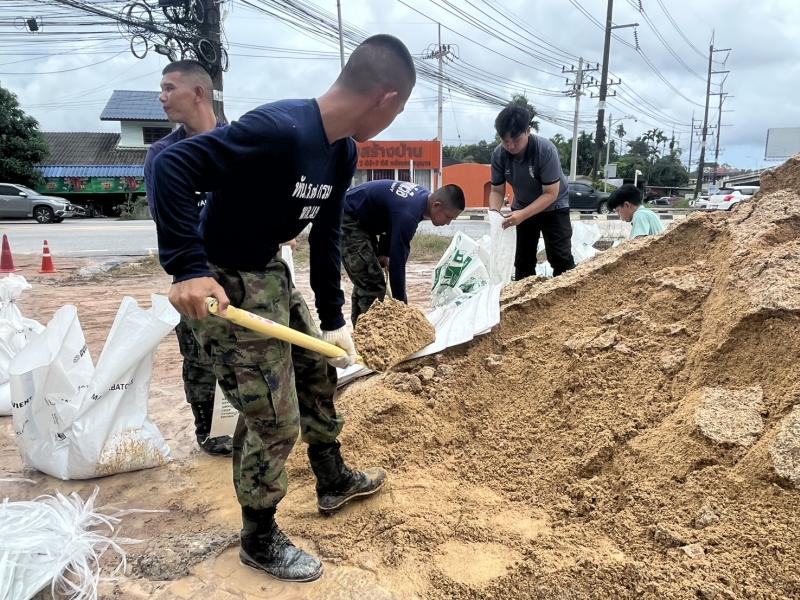 รายละเอียด : วันที่ 9 กันยายน 2568 ศูนย์ช่วยเหลือผู้ประสบภัยน้ำท่วม เทศบาลตำบลทับมา ทั้ง 2 แห่ง ได้รับการสนับสนุนกำลังพลจาก ศูนย์บรรเทาสาธารณภัย ทัพเรือภาคที่ 1 ลงพื้นที่ให้การช่วยเหลือประชาชนในการบรรจุกระสอบทรายและขนย้ายทราย เพื่อบรรเทาความเดือดร้อนจากสถานการณ์อุทกภัย การดำเนินการครั้งนี้ ทำให้ประชาชนในพื้นที่ได้รับความช่วยเหลืออย่างทันท่วงที สามารถป้องกันและลดผลกระทบจากมวลน้ำได้เป็นอย่างดี ทางศูนย์ฯ และประชาชนที่ประสบอุทกภัย ขอขอบพระคุณศูนย์บรรเทาสาธารณภัย ทัพเรือภาคที่ 1 มา ณ โอกาสนี้ ประชาชนที่ประสบปัญหาหรือประสงค์ขอความช่วยเหลือสามารถติดต่อ ศูนย์ช่วยเหลือผู้ประสบภัยน้ำท่วม เทศบาลตำบลทับมา ได้ที่หมายเลขโทรศัพท์ 09-2903-4000 หรือ 0-3866-3168