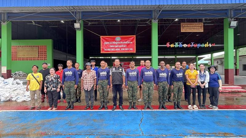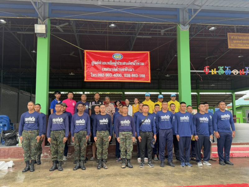 "ศูนย์ช่วยเหลือผู้ประสบภัยน้ำท่วม เทศบาลตำบลทับมา ได้รับการสนับสนุนกำลังพลจาก ศูนย์บรรเทาสาธารณภัย ทัพเรือภาคที่ 1"