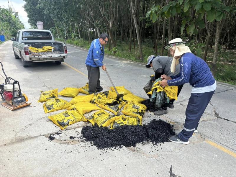 เทศบาลตำบลทับมา ดำเนินการซ่อมแซมถนนสายเขาโบสถ์ – ยางปีนตอ บรรเทาความเดือดร้อนประชาชน