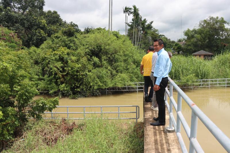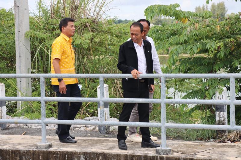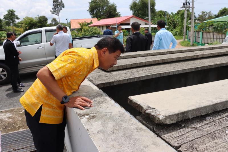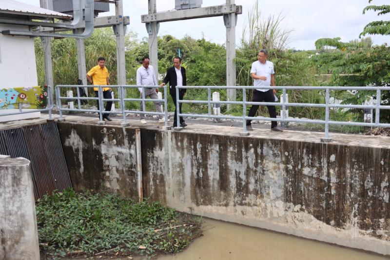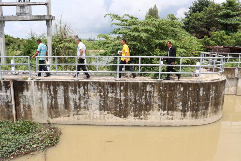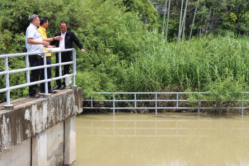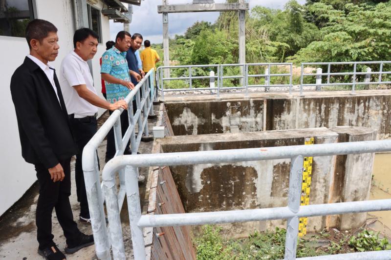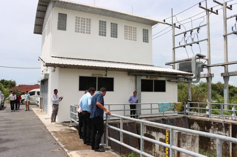 เทศบาลตำบลทับมา ร่วมกับสำนักงานโยธาธิการและผังเมืองจังหวัดระยอง ลงพื้นที่ตรวจสอบผนังกั้นน้ำบริเวณ สถานีสูบน้ำคลองหนองโพรง