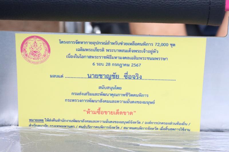เทศบาลตำบลทับมา ร่วมกับกรมส่งเสริมและพัฒนาคุณภาพชีวิตคนพิการ มอบกายอุปกรณ์ช่วยเหลือคนพิการ เฉลิมพระเกียรติพระบาทสมเด็จพระเจ้าอยู่หัว