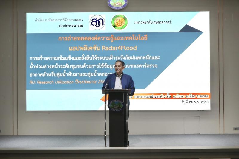รายละเอียด : วันที่ 24 กรกฎาคม 2568 เวลา 09.00 น. ณ ห้องประชุมอาคารอเนกประสงค์ 5 ชั้น เทศบาลตำบลทับมา อำเภอเมืองระยอง จังหวัดระยอง นายประสานต์ พฤกษาชาติ รองนายกองค์การบริหารส่วนจังหวัดระยอง กล่าวเปิดการประชุมการถ่ายทอดองค์ความรู้และเทคโนโลยีแอปพลิเคชัน “Radar 4 Flood” พร้อมด้วยนายสุทิน แก้วประถม นายกเทศมนตรีตำบลทับมา คณะผู้บริหาร สมาชิกสภาเทศบาล หัวหน้าส่วนราชการ องค์กรภาครัฐและเอกชน ประชาชน เจ้าหน้าที่ และผู้มีส่วนเกี่ยวข้อง เข้าร่วมประชุมการ ถ่ายทอดองค์ความรู้และเทคโนโลยีแอปพลิเคชัน “Radar 4 Flood” ซึ่งเป็นเครื่องมือในการติดตามสภาพอากาศและแจ้งเตือนอุทกภัยล่วงหน้าในระดับชุมชน แอปพลิเคชัน “Radar 4 Flood” ได้รับการพัฒนาเพื่อเสริมศักยภาพด้านการจัดการภัยพิบัติ โดยเฉพาะในด้านการแจ้งเตือนล่วงหน้าเกี่ยวกับฝนตกหนัก น้ำหลาก และน้ำท่วม ซึ่งจะช่วยให้ชุมชนสามารถรับมือกับสถานการณ์ฉุกเฉินได้อย่างทันท่วงที ลดความเสี่ยงและความเสียหายที่อาจเกิดขึ้นกับชีวิตและทรัพย์สินของประชาชนในพื้นที่ เทศบาลตำบลทับมาให้ความสำคัญกับการเตรียมความพร้อมรับมือกับภัยธรรมชาติ โดยมุ่งหวังให้เทคโนโลยีเข้ามามีบทบาทในการคุ้มครองความปลอดภัยและคุณภาพชีวิตของประชาชนอย่างยั่งยืน