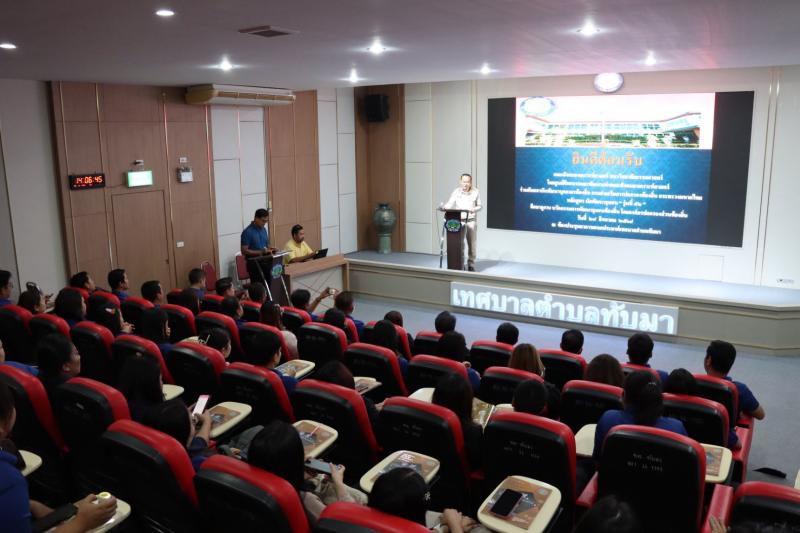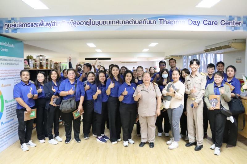 รายละเอียด : วันที่ 28 สิงหาคม 2568 เวลา 13.00 น. นายสุทิน แก้วประถม นายกเทศมนตรีตำบลทับมา พร้อมด้วยคณะผู้บริหาร สมาชิกสภาเทศบาลฯ และหัวหน้าส่วนราชการ ให้การต้อนรับคณะศึกษาดูงานจากคณะสังคมสงเคราะห์ศาสตร์ มหาวิทยาลัยธรรมศาสตร์ โดยศูนย์ฝึกอบรมและพัฒนาแห่งคณะสังคมสงเคราะห์ศาสตร์ ร่วมกับ สถาบันพัฒนาบุคลากรท้องถิ่น กรมส่งเสริมการปกครองท้องถิ่น กระทรวงมหาดไทย หลักสูตร “นักพัฒนาชุมชน รุ่นที่ 52” จำนวน 65 คน และอาจารย์ผู้ปฏิบัติงานโครงการฯ จำนวน 4 คน ศึกษาดูงานในหัวข้อ เรื่อง "นวัตกรรมการพัฒนาชุมชนท้องถิ่นโดยองค์กรปกครองส่วนท้องถิ่น" โดยมีนางสาวเรวีญา ขจิตเนติธรรม ปลัดเทศบาลตำบลทับมา, นางรำไพ จันทะโพธิ์ ผู้อำนวยการกองสวัสดิการสังคม และนางทิพย์ เจริญคุณ หัวหน้าฝ่ายสังคมสงเคราะห์ เป็นผู้บรรยายพิเศษแก่คณะศึกษาดูงานในครั้งนี้ พร้อมเยี่ยมชมการดำเนินงานศูนย์บริการและฟื้นฟูสำหรับผู้สูงอายุในชุมชนเทศบาลตำบลทับมา (Thapma Day Care Center) ณ อาคารอเนกประสงค์ เทศบาลตำบลทับมา (ตึก 5 ชั้น)