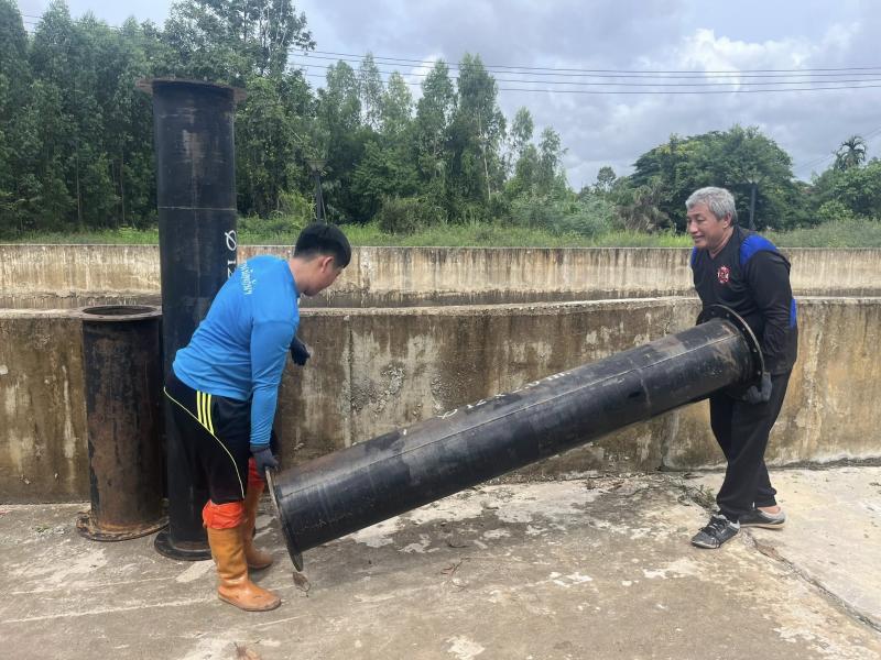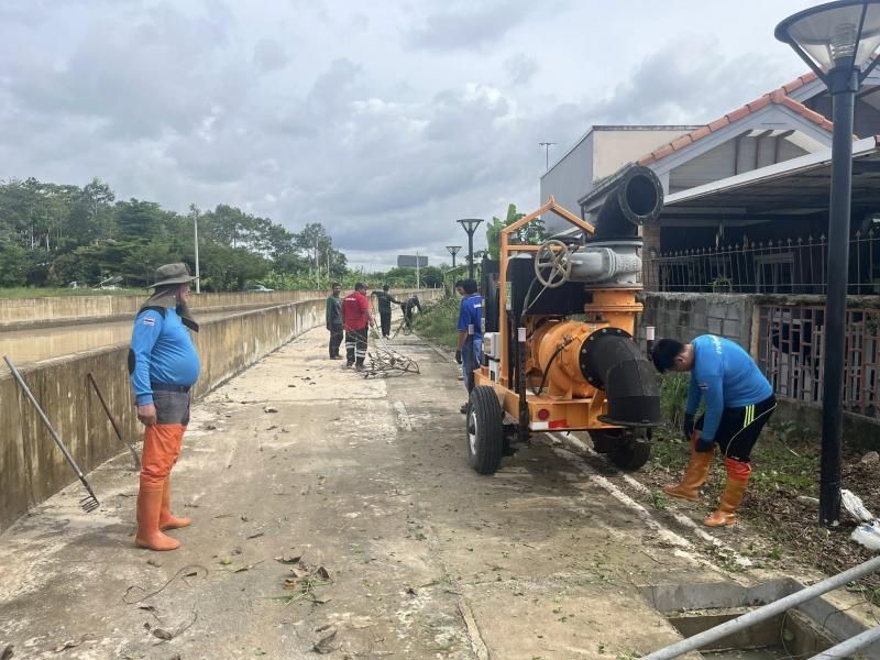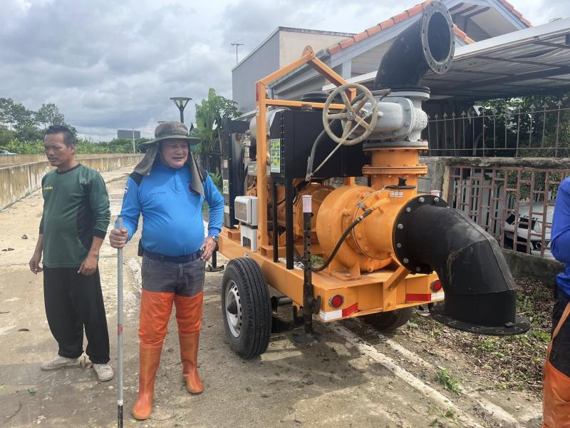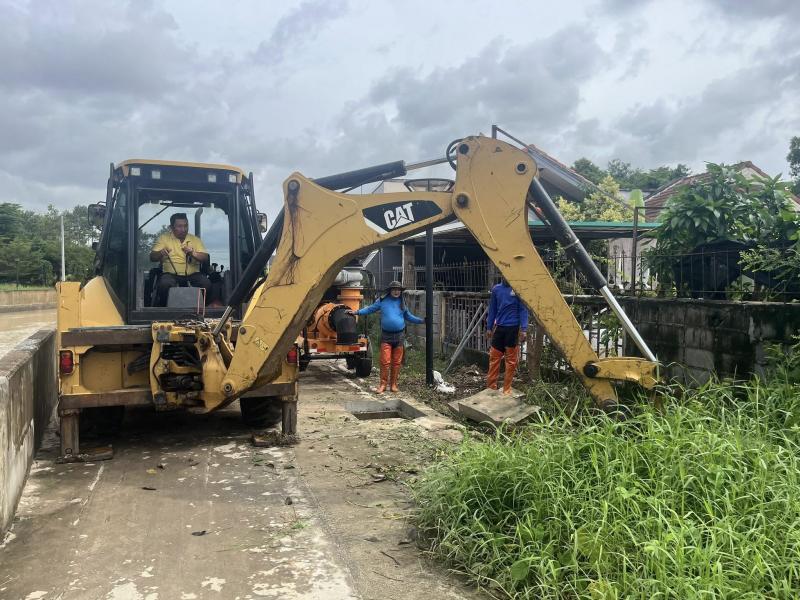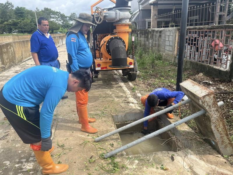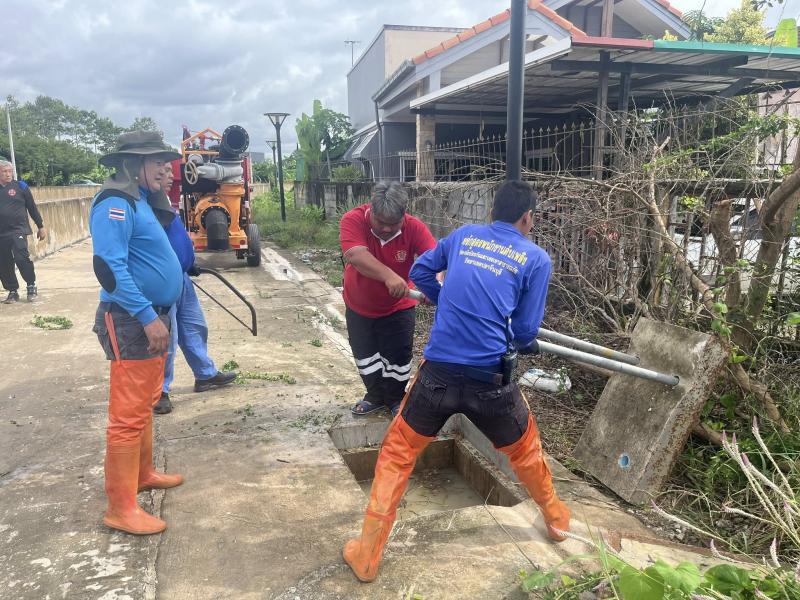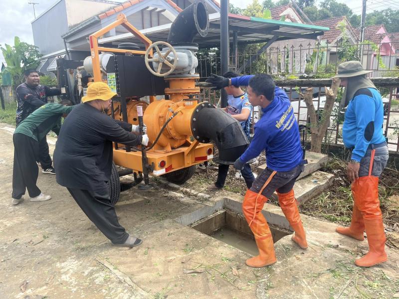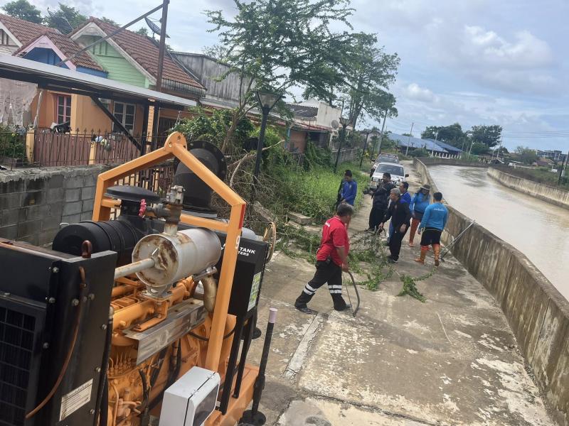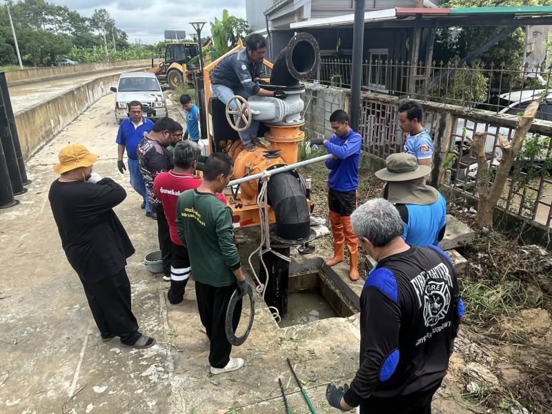 เทศบาลตำบลทับมา ลงพื้นที่ติดตั้งเครื่องสูบน้ำเสริมการระบายน้ำ ป้องกันน้ำท่วมในพื้นที่