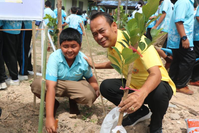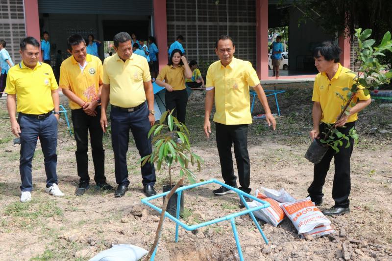 เทศบาลตำบลทับมา ร่วมกิจกรรมปลูกต้นไม้ผลยืนต้น เฉลิมพระเกียรติฯ เนื่องในโอกาสวันเฉลิมพระชนมพรรษา 73 พรรษา พระบาทสมเด็จพระเจ้าอยู่หัว
