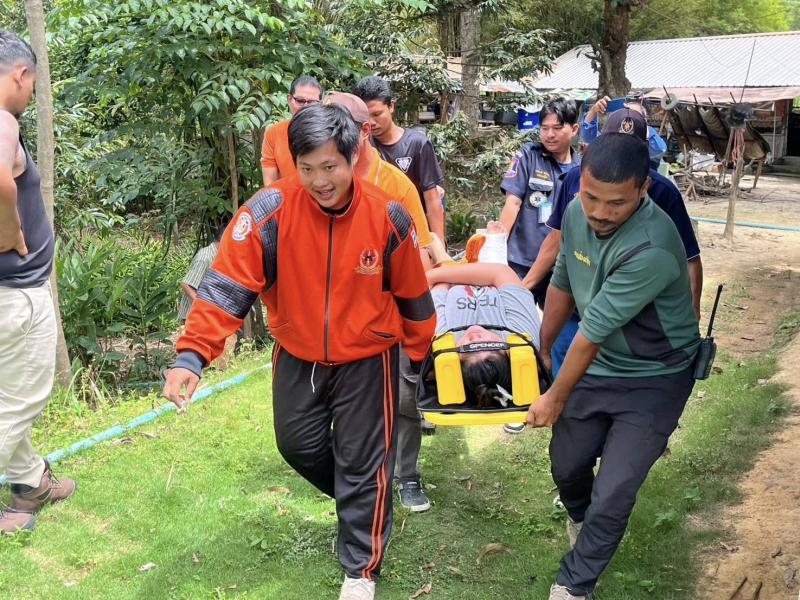 เทศบาลตำบลทับมา ลงพื้นที่ช่วยเหลือผู้ประสบเหตุพลัดตกบ่อน้ำ หมู่ 7 บ้านเขาโบสถ์