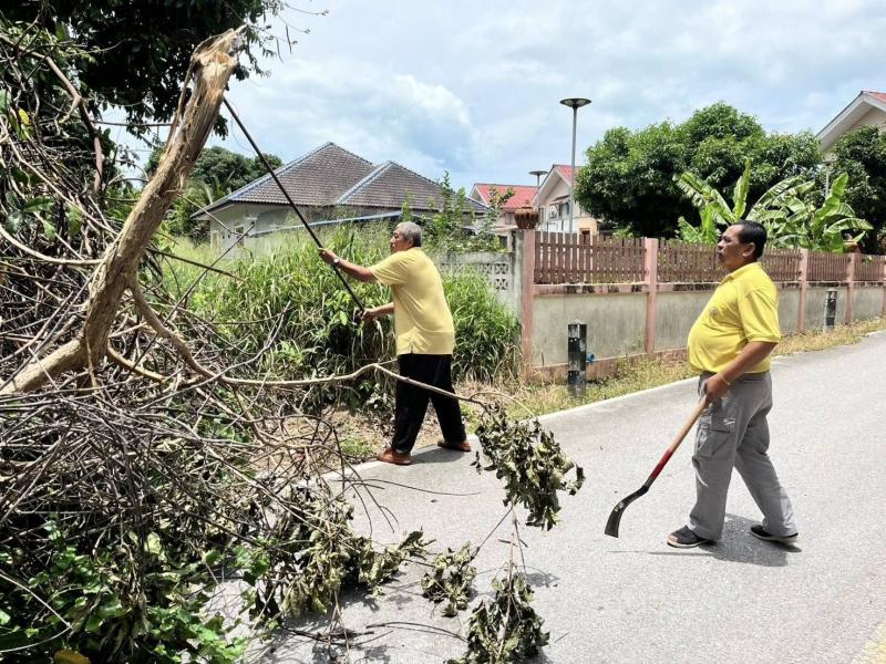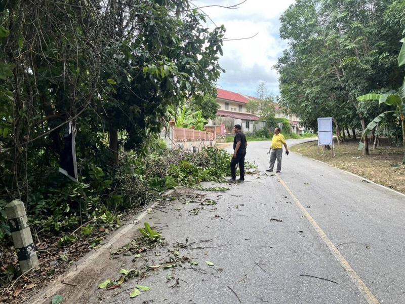 เทศบาลตำบลทับมา ลงพื้นที่ตัดแต่งกิ่งไม้หักโค่น ป้องกันอันตรายประชาชน