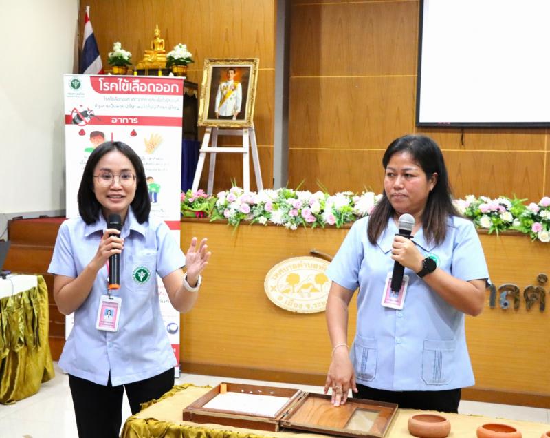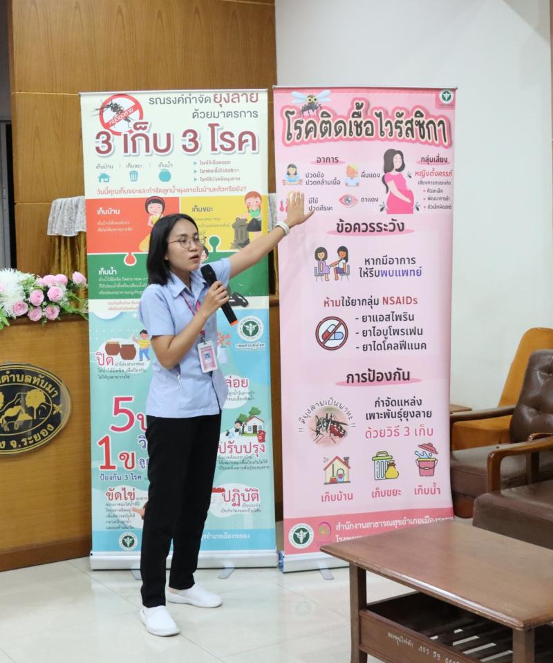 รายละเอียด : วันที่ 19 สิงหาคม 2568 เวลา 08.30 น. นายสุทิน แก้วประถม นายกเทศมนตรีตำบลทับมา เป็นประธานเปิดโครงการป้องกันและควบคุมโรคที่เกิดจากยุงลาย ประจำปีงบประมาณ 2568 มีนางสาวเรวีญา ขจิตเนติธรรม ปลัดเทศบาลตำบลทับมา เป็นผู้กล่าวรายงานวัตถุประสงค์การจัดโครงการฯ เพื่อให้ประชาชนทั่วไป แกนนำสุขภาพ และอาสาสมัครสาธารณสุขประจำหมู่บ้าน ได้รับความรู้เรื่องโรคติดต่อที่มียุงลายเป็นพาหะนำโรค การป้องกันภัยจากยุงลาย การป้องกัน การเฝ้าระวัง และการควบคุมโรคที่เกิดจากยุงลาย รวมถึงการใช้สารเคมีและอุปกรณ์กำจัดยุงโตเต็มวัย ซึ่งการจัดโครงการดังกล่าวได้รับการอุดหนุนเงินงบประมาณ จากกองทุนพัฒนาไฟฟ้าเขตนิคมอุตสาหกรรมมาบตาพุด จังหวัดระยอง ภายในโครงการมีการบรรยายให้ความรู้เรื่อง “โรคติดต่อที่มียุงลายเป็นพาหะนำโรค การป้องกันภัยจากยุงลาย และการป้องกันโรคจากยุงลาย การเฝ้าระวังโรคและการควบคุมโรคไข้เลือดออก และฝึกปฏิบัติการใช้สารเคมีและอุปกรณ์กำจัดยุงตัวเต็มวัย” ทีมวิทยากรนำโดยนางกรรณิการ์ ชุ่มชื่น นักสาธารณสุขปฏิบัติการ และคณะ ผู้เข้าร่วมกิจกรรมในครั้งนี้ประกอบด้วยผู้นำชุมชน แกนนำสุขภาพ อสม. และประชาชนในเขตพื้นที่ตำบลทับมา ที่ให้ความสนใจ จำนวน 60 คน ณ ห้องประชุมโรงเรียนอนุบาลทับมา ตำบลทับมา อำเภอเมืองระยอง จังหวัดระยอง สำหรับผู้ที่สนใจข้อมูลเพิ่มเติม สามารถติดต่อสอบถามได้ที่ กองสาธารณสุขและสิ่งแวดล้อม เทศบาลตำบลทับมา โทรศัพท์ 09-2895-7555 ในวันและเวลาราชการ