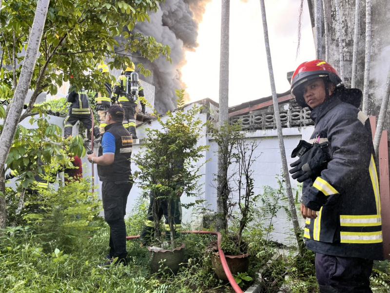"งานป้องกันและบรรเทาสาธารณภัย เทศบาลตำบลทับมา ลงพื้นที่ระงับเหตุเพลิงไหม้ ร้านเอส วาย เค"