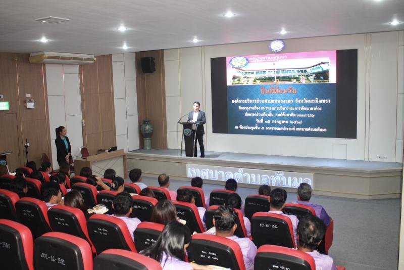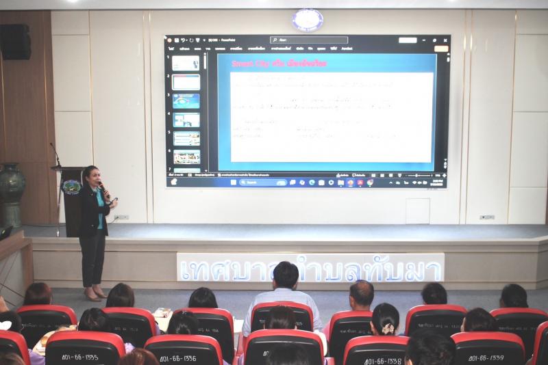 รายละเอียด : วันอังคาร ที่ 15 กรกฎาคม 2568 เวลา 13.30 น. นายฉัตร แก่กล้า รองนายกเทศมนตรีตำบลทับมา กล่าวต้อนรับคณะศึกษาดูงานจากองค์การบริหารส่วนตำบลหนองจอก อำเภอบางปะกง จังหวัดฉะเชิงเทรา นำโดยนายไพเราะ ล้ำเลิศ นายกองค์การบริหารส่วนตำบลหนองจอก ซึ่งประกอบด้วยคณะผู้บริหาร สมาชิกสภาเทศบาล หัวหน้าส่วนราชการ ผู้นำชุมชน พนักงานและเจ้าหน้าที่ที่เกี่ยวข้อง จำนวน 45 คน เข้าศึกษาดูงานเรื่อง "แนวทางการบริหารและการพัฒนาองค์กรปกครองส่วนท้องถิ่น ภายใต้แนวคิดเมืองอัจฉริยะ (Smart City)" ซึ่งได้รับเกียรติจากนางรำไพ จันทะโพธิ์ ผู้อำนวยการกองสวัสดิการสังคม และนางสาวพิชาภัค โสภาคำ นักประชาสัมพันธ์ปฏิบัติการ เป็นผู้บรรยายพิเศษแก่คณะดูงานในครั้งนี้ ณ ห้องประชุมชั้น 5 อาคารอเนกประสงค์เทศบาลตำบลทับมา