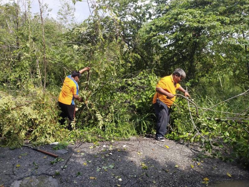 เทศบาลตำบลทับมา ลงพื้นที่ตัดต้นไม้ล้มขวางถนนสายเสม็ดแดง-ซัสโก้ หมู่ที่ 6 ตำบลทับมา