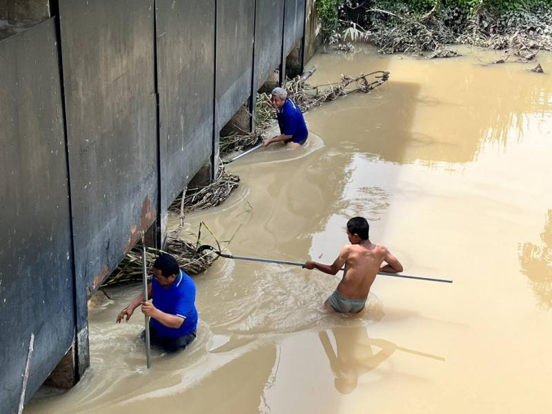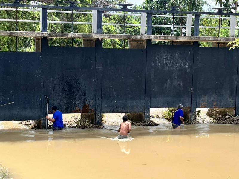 เจ้าหน้าที่งานป้องกันและบรรเทาสาธารณภัย ลงพื้นที่กำจัดขยะและเศษกิ่งไม้ ที่กีดขวางการระบายน้ำ