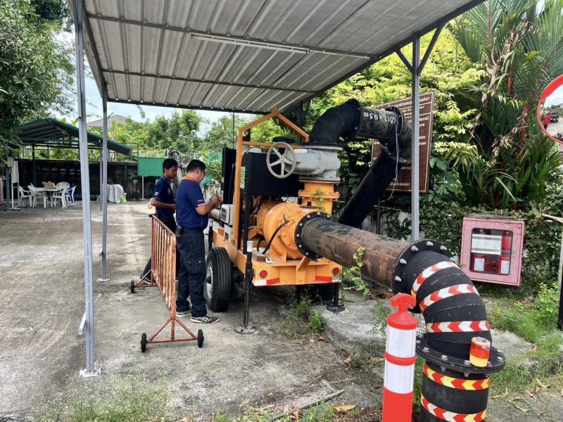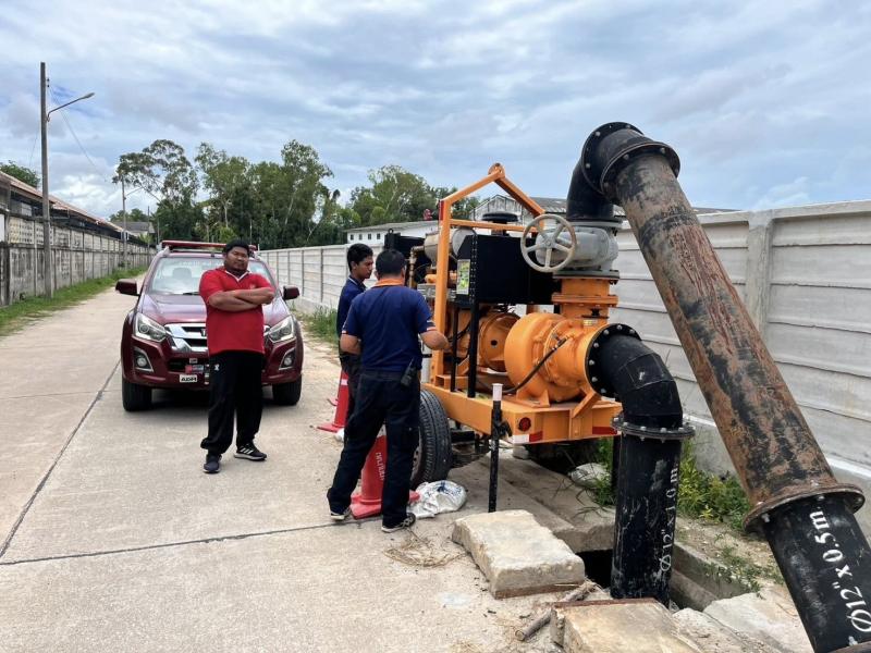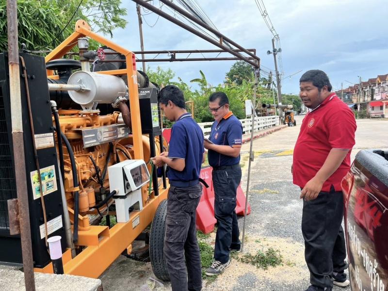 เทศบาลตำบลทับมา เตรียมความพร้อมเครื่องสูบน้ำเสริมจุดเสี่ยง รับมือฤดูฝน ป้องกันน้ำท่วมพื้นที่