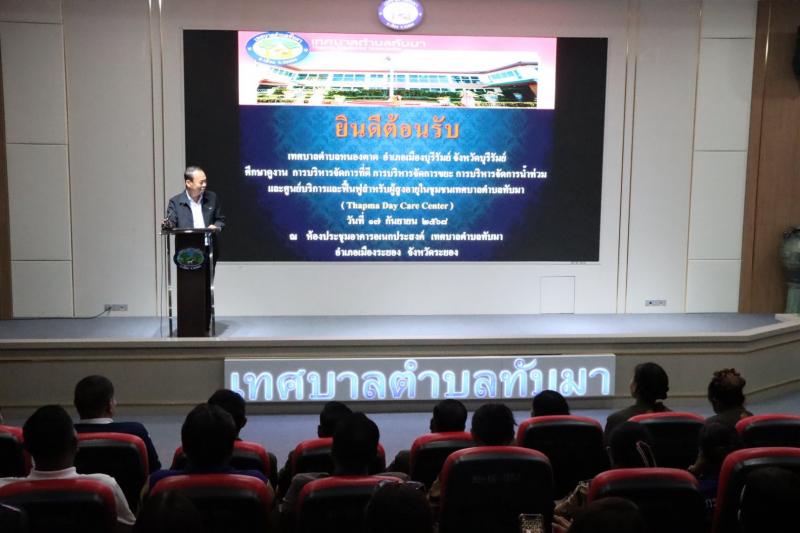 รายละเอียด : วันที่ 17 กันยายน 2568 เวลา 10.00 น. นายสุทิน แก้วประถม นายกเทศมนตรีตำบลทับมา กล่าวต้อนรับคณะศึกษาดูงานจาก เทศบาลตำบลหนองตาด อำเภอเมืองบุรีรัมย์ จังหวัดบุรีรัมย์ นำโดย นางสาวพิมานมาศ ทองทรวง นายกเทศมนตรีตำบลหนองตาด พร้อมด้วยหัวหน้าส่วนราชการ พนักงานและเจ้าหน้าที่ที่เกี่ยวข้อง จำนวน 52 คน เข้าศึกษาดูงานและแลกเปลี่ยนเรียนรู้ในหัวข้อเรื่อง “การดำเนินงานการบริหารจัดการที่ดี ,การบริหารจัดการขยะ ,การบริหารจัดการน้ำท่วม และฟื้นฟูสำหรับผู้สูงอายุในชุมชนเทศบาลตำบลทับมา (Thapma Day Care Center)” โดยมีนางสาวเรวีญา ขจิตเนติธรรม ปลัดเทศบาลตำบลทับมา เป็นผู้บรรยายพิเศษแก่คณะศึกษาดูงาน พร้อมพาเยี่ยมชมการดำเนินงานและกิจกรรมการดูแลผู้สูงอายุของศูนย์บริการและฟื้นฟูสำหรับผู้สูงอายุในชุมชนเทศบาลตำบลทับมา (Thapma Day Care Center) ณ อาคารอเนกประสงค์เทศบาลตำบลทับมา (ตึก 5 ชั้น) พร้อมทั้งเยี่ยมชม สื่อการเรียนการสอน ห้องเรียนอัจฉริยะ โรงเรียนอนุบาลทับมา ภาพ/ข่าว : ระพีพัฒน์