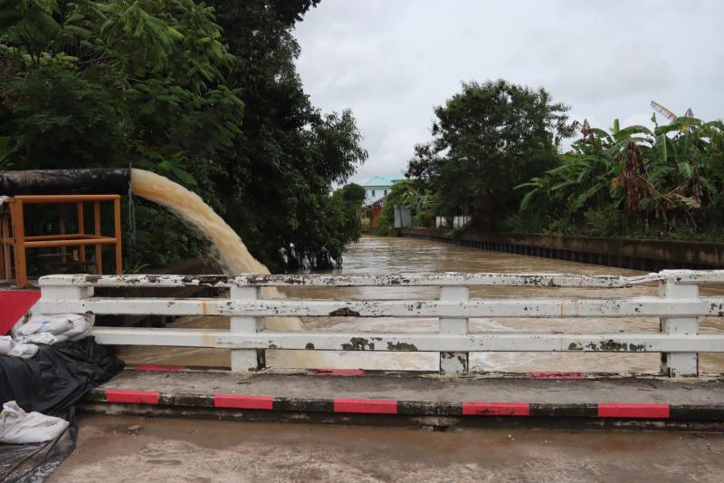 นายภาสกร เปิดเผยว่า เบื้องต้นได้มาติดตามสถานการณ์น้ำบริเวณสะพานแตง ภายในหมู่บ้านกรุงไทยทั้ง 2 ฝั่งคลองทับมา ซึ่งเป็นตัวปัญหาทำให้น้ำท่วม เนื่องจากตัวสะพานต่ำเกินไป ในสัปดาห์หน้าจะมีการพูดคุยแก้ไขปัญหากับส่วนราชการ และทางหมู่บ้านกรุงไทย และอาจจำเป็นจะตัองมีการตัังนิติบุคคลขึ้นมา เพื่อดำเนินการขออนุญาตปรับปรุงสะพาน ซึ่งทาง อบจ.ระยอง จะมีการจัดสรรงบประมาณเบื้องต้นมาปรับปรุงสะพานให้ หากมีการยกสะพานให้สูงขึ้นกว่าพนังกั้นน้ำแล้วบริเวณนี้ก็จะไม่มีน้ำท่วมอีก ขณะเดียวกันบริเวณตามซอยต่างๆ ที่มีน้ำจากคลองทับมาเอ่อล้นท่วมก็จะดึงเข้าระบบได้ ส่วนที่ประตูระบายน้ำปลายคลองทับมา ขณะนี้ชลประทานได้มีการเปิดประตูระบายทั้ง 4 บาน พยายามที่จะผลักดันน้ำออกไป ซึ่งทางจังหวัดพยายามที่จะแก้วิกฤตตรงนี้ให้สมบูรณ์ที่สุด โดยเฉพาะในช่วงวันที่ 10-11 ก.ย.นี้ ฝนอาจจะตกลงมาอีก ได้สั่งการใน อปท.แต่ละพื้นที่เตรียมกระสอบทรายเสริมในพื้นที่ที่ประสบน้ำท่วม และสแตนบายไว้ตลอด ส่วนการแก้ไขปัญหาระยะยาว จะมีเร่งวางแนวทางแก้ไขต่อไป.