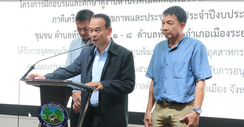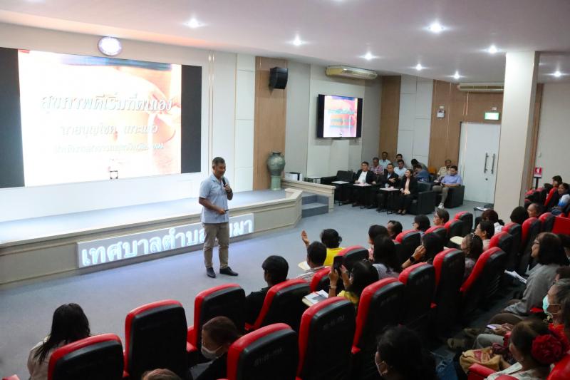 รายละเอียด : วันที่ 10 กันยายน 2568 เวลา 08.30 น. นายสุทิน แก้วประถม นายกเทศมนตรีตำบลทับมา เป็นประธานเปิดโครงการฝึกอบรมและศึกษาด้านโรคไม่ติดต่อเรื้อรัง เพื่อพัฒนาศักยภาพแกนนำสุขภาพภาคีเครือข่ายด้านสุขภาพและประชาชน ประจำปีงบประมาณ 2568 ซึ่งได้รับการสนับสนุนงบประมาณจากกองทุนพัฒนาไฟฟ้าเขตนิคมอุตสาหกรรมมาบตาพุด จังหวัดระยอง โดยมีนายฉัตร แก่กล้า ประธานคณะกรรมการพัฒนาชุมชนในพื้นที่รอบโรงไฟฟ้าตำบลทับมา เป็นผู้กล่าววัตถุประสงค์การจัดโครงการฯ เพื่อทบทวนบทบาทและภารกิจของแกนนำสุขภาพ ภาคีเครือข่ายด้านสุขภาพ ในการดูแลสุขภาพของประชาชน พัฒนาความรู้และทักษะที่จำเป็นและเร่งด่วนของแกนนำสุขภาพ ภาคีเครือข่ายด้านสุขภาพในการปฏิบัติงานให้เหมาะสมกับสภาพปัญหาสาธารณสุขของพื้นที่ และเพื่อพัฒนาระบบการเฝ้าระวังและดูแลผู้ป่วยด้วยโรคที่เป็นปัญหาสำคัญของชุมชน ภายในโครงการมีการบรรยายให้ความรู้ในหัวข้อเรื่องการดูแลผู้ป่วยด้านโรคติดต่อไม่เรื้อรัง และแบ่งกลุ่มฝึกปฏิบัติ วิทยากรโดยคุณบุญโชค เกาะแก้ว สำนักงานสาธารณสุขจังหวัดระยอง ผู้เข้าร่วมโครงการประกอบด้วยคณะผู้บริหาร สมาชิกสภาฯ เครือข่ายสุขภาพตำบลทับมา พนักงานและเจ้าหน้าที่ที่เกี่ยวข้อง จำนวน 135 คน ณ ห้องประชุมชั้น 5 อาคารอเนกประสงค์เทศบาลตำบลทับมา (ตึก 5 ชั้น)