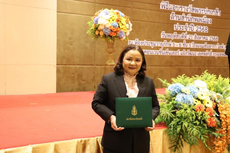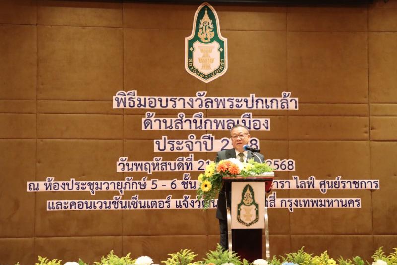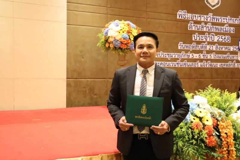 รายละเอียด : วันที่ 21 สิงหาคม 2568 เวลา 10.00 น. นายสุทิน แก้วประถม นายกเทศมนตรีตำบลทับมา พร้อมด้วยคณะผู้บริหาร และหัวหน้าส่วนราชการ รับรางวัลพระปกเกล้า ด้านสำนึกพลเมือง ระดับดี โดยมีนายวิทวัส ชัยภาคภูมิ เลขาธิการสถาบันพระปกเกล้า เป็นผู้มอบรางวัล ณ ห้องประชุมวายุภักษ์ 5-6 ชั้น 5 โรงแรมเซ็นทารา ไลฟ์ ศูนย์ราชการและคอนเวนชันเซ็นเตอร์ ถนนแจ้งวัฒนะ หลักสี่ กรุงเทพมหานคร รางวัลดังกล่าวเป็นการส่งเสริมองค์กรนำหลักธรรมาภิบาลมาประยุกต์ใช้ในการดำเนินงาน ให้เกิดการมีส่วนร่วมกับชุมชน สังคม อันก่อให้เกิดการดำเนินงานด้วยความมีสำนึกพลเมือง ซึ่งได้แก่ ความมีเหตุผล มีวินัย มีความซื่อสัตย์ มีความรับผิดชอบ มีจิตสาธารณะ มีธรรมาภิบาล และบำเพ็ญประโยชน์เพื่อชุมชนและสังคม อย่างเป็นที่ประจักษ์ ภาพ/ข่าว : นางสาวพิชาภัค โสภาคำ