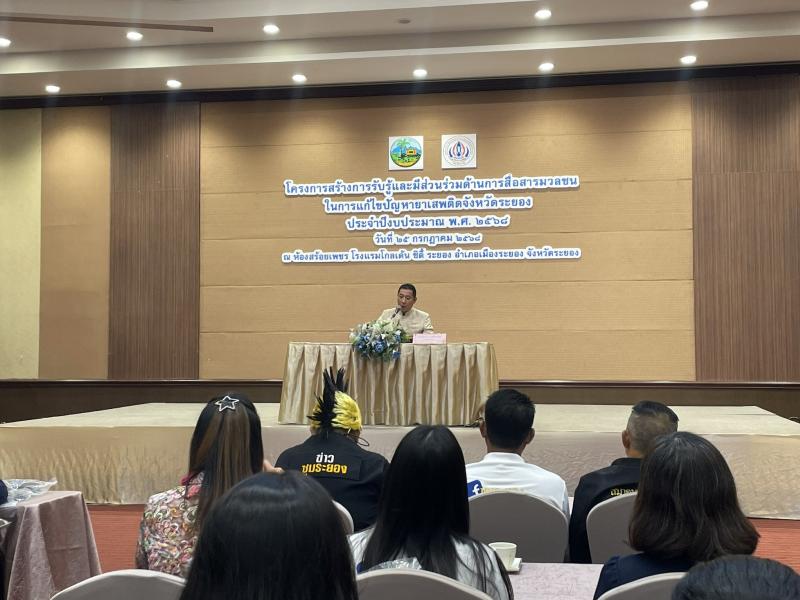 รายละเอียด : วันที่ 25 กรกฎาคม 2568 เวลา 11.00 น. ที่โรงแรมโกลเด้นซิตี้ ระยอง นายไตรภพ วงศ์ไตรรัตน์ ผู้ว่าราชการจังหวัดระยอง เป็นประธานเปิดโครงการสร้างการรับรู้และมีส่วนร่วมด้านการสื่อสารมวลชนในการแก้ไขปัญหายาเสพติด ประจำปีงบประมาณ 2568 โดยมีนายเรืองฤทธิ์ ประกอบธรรม ปลัดจังหวัดระยอง พร้อมหัวหน้าส่วนราชการ เจ้าหน้าที่ฝ่ายปกครอง เจ้าหน้าที่องค์กรปกครองส่วนท้องถิ่น และสื่อมวลชนร่วมกิจกรรม การอบรมดังกล่าวมีวัตถุประสงค์เพื่อส่งเสริมบทบาทสื่อมวลชนเป็นสื่อกลางนำเสนอข้อมูลการแก้ไขปัญหายาเสพติดให้ประชาชนรับรู้ และสะท้อนข้อมูลความต้องการของประชาชนกลับสู่ภาครัฐ เปิดพื้นที่แลกเปลี่ยนความคิดเห็นและพัฒนาแนวทางการประชาสัมพันธ์ร่วมกัน นายไตรภพ วงศ์ไตรรัตน์ ผวจ.ระยอง กล่าวว่า การป้องกันและแก้ไขปัญหายาเสพติดเป็นภารกิจสำคัญที่ต้องอาศัยความร่วมมือจากทุกภาคส่วน โดยเฉพาะสื่อมวลชนซึ่งถือเป็นกำลังหลักในการสื่อสารข้อมูลที่ถูกต้องไปยังประชาชน ทั้งนี้ เพื่อให้สื่อมวลชนในพื้นที่ทำหน้าที่เป็นกระบอกเสียง เผยแพร่ข้อมูลข่าวสารเกี่ยวกับการป้องกันและปราบปรามยาเสพติดให้ประชาชนรับรู้ พร้อมเปิดเวทีแลกเปลี่ยนข้อมูล ปัญหา และข้อเสนอแนะจากชุมชน เพื่อให้หน่วยงานรัฐนำไปใช้ปรับแผนการทำงานให้เข้มข้นขึ้น โครงการนี้ถือเป็นอีกหนึ่งแนวทางสำคัญในการเสริมพลังเครือข่ายการสื่อสารของจังหวัดระยอง เพื่อต่อยอดสู่การป้องกันและแก้ไขปัญหายาเสพติดอย่างยั่งยืนและเกิดประโยชน์สูงสุดต่อประชาชนในพื้นที่ต่อไป