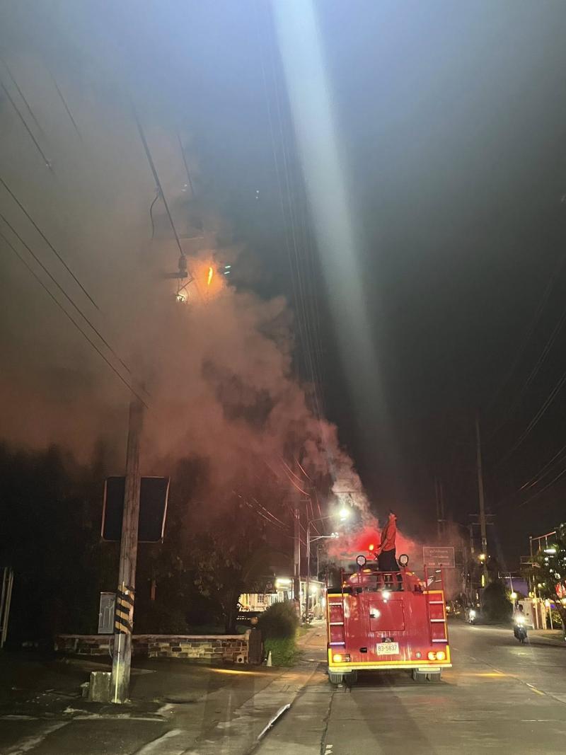 เทศบาลตำบลทับมา ลงพื้นที่ระงับเหตุเพลิงไหม้สายไฟฟ้า ใกล้หม้อแปลงไฟฟ้า หมู่ที่ 2 บ้านแหลมมะขาม