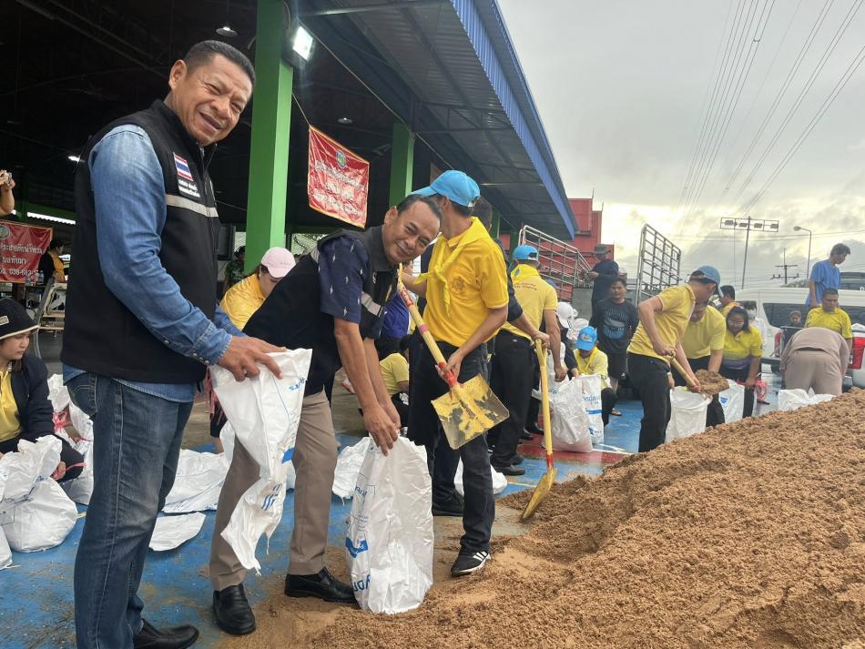 เทศบาลตำบลทับมา ร่วมกับหลายภาคส่วน กรอกกระสอบทราย เร่งช่วยเหลือประชาชนจากสถานการณ์น้ำท่วม [8 กันยายน 2568]