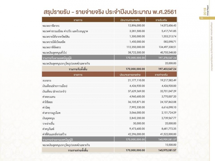 รายงานผลการดำเนินงาน ประจำปีงบประมาณ 2561