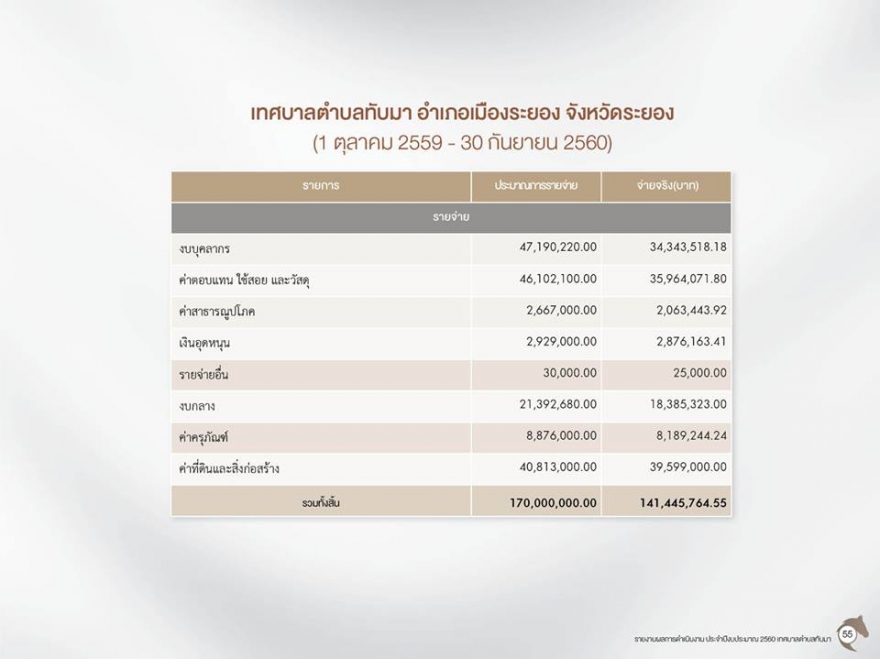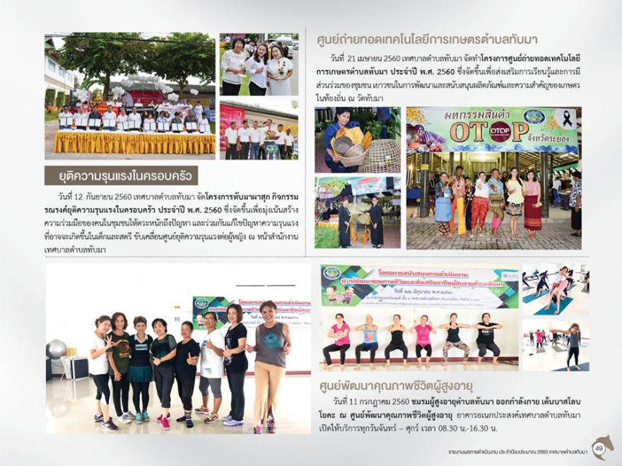 รายงานผลการดำเนินงานเทศบาลตำบลทับมา ประจำปีงบประมาณ พ.ศ.2560