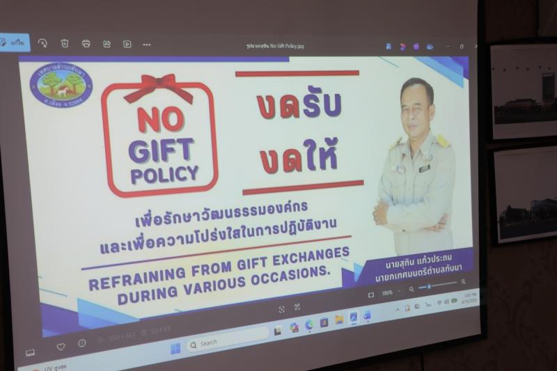 เทศบาลตำบลทับมา ขับเคลื่อนนโยบายไม่รับของขวัญและของกำนัลทุกชนิดจากการปฏิบัติหน้าที่ (No Gift Policy) มุ่งเสริมสร้างธรรมาภิบาล โปร่งใสในการบริหารงาน